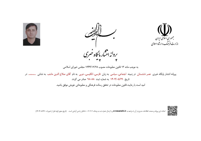 🔆پیامِ رسمیِ مدیر مسئولِ پایگاه تحلیلی خبری عصر دشتستان به مناسبت راهاندازی سایت خبری؛