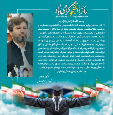 پیام تبریک شهردار برازجان به مناسبت روز دانشجو